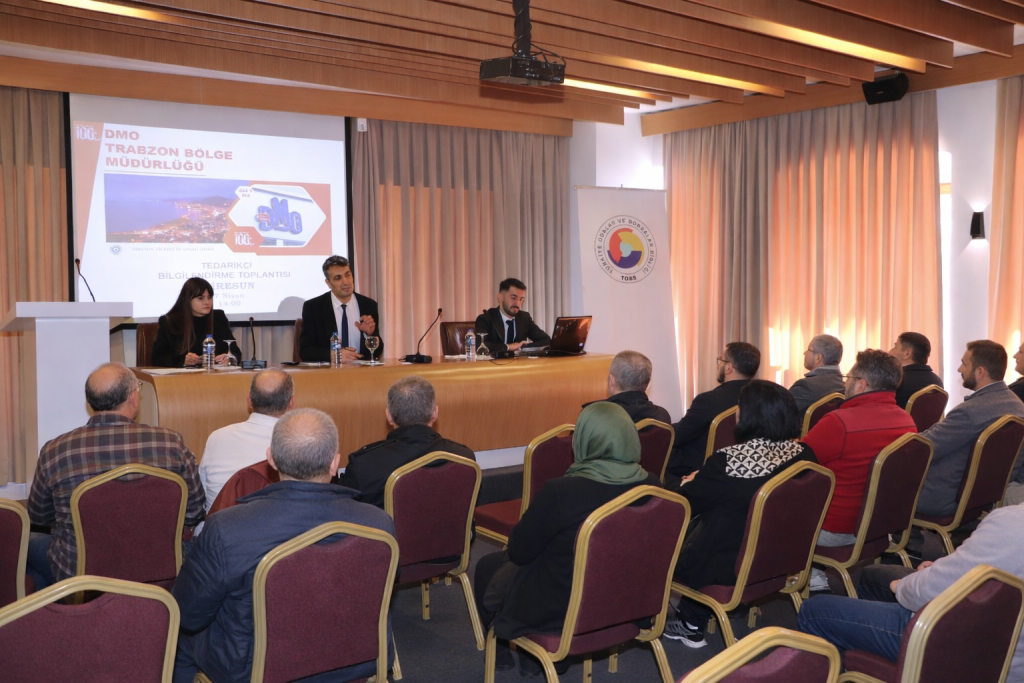 DMO Trabzon Bölge Müdürü Arda Aksuoğlu, sunumunda kurumun çalışma şartları, ürün ve hizmet temin süreçleri ile tedarik zinciri yönetimi hakkında kapsamlı bilgiler verdi. Aksuoğlu, özellikle kamu alımlarında şeffaflık, güvenilirlik ve maliyet avantajı sağlayan DMO sisteminin işleyişine değinerek, üyelerin bu süreçlerden nasıl faydalanabileceklerini anlattı.