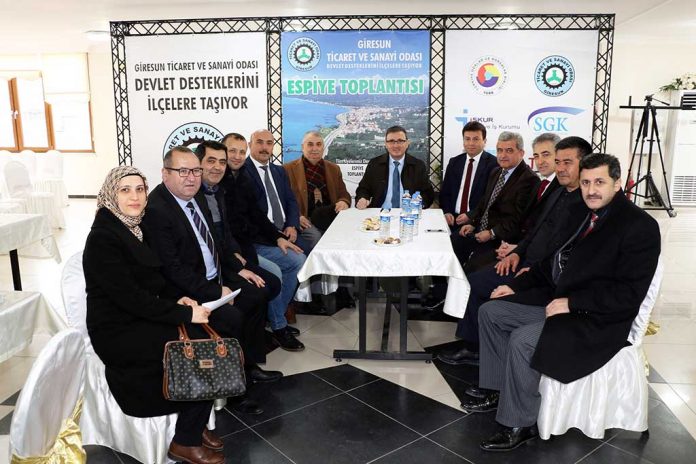 Giresun Ticaret ve Sanayi Odası organizasyonundaEspiye ilçesinde yer alan üyeler ile bir araya geldi. Espiye ilçesinde yer alan Baladın Düğün Salonunda gerçekleştirilen etkinlikte firma temsilcilerine danışmanlık masaları vasıtasıyla yatırım ve istihdam yardımları hakkında bilgilendirmeler yapıldı.