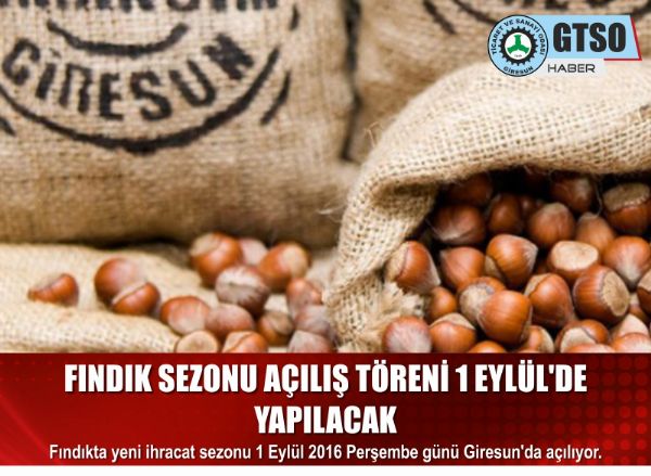Ülkemizin en önemli tarımsal ürünlerinden olan fındık ve mamulleri sektörü yeni ihracat sezonu açılış etkinliği, Fındık Tanıtım Grubu organizasyonunda, 01 Eylül 2016 Perşembe günü saat 11:00’de Giresun’da gerçekleştirileceği açıklandı.
