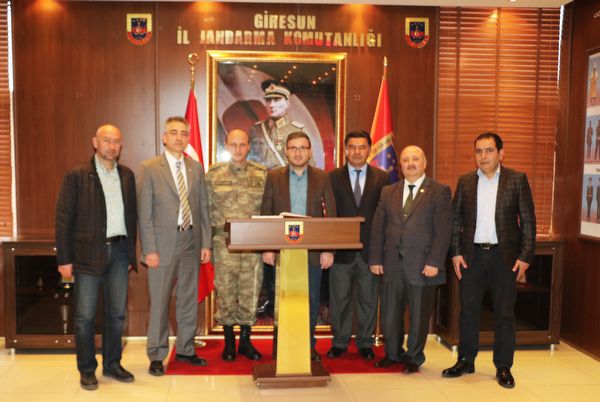Giresun Ticaret ve Sanayi Odası yönetiminden, Giresun İl Jandarma Komutanı Albay Ali İhsan Ersoy'u makamında ziyaret. Son dönemde yurtiçi ve dışında terör unsurlarına karşı yapılan operasyonlar dolayısıyla moral ziyaretinde bulunan Giresun Ticaret ve Sanayi Odası Yönetim Kurulu Başkanı Hasan Çakırmelikoğlu; ”Ülkemizin güvencesi olan Türk Silahlı Kuvvetlerimiz bu sürecide en kısa zamanda sonuçlandırarak, Türk Milletinin huzur ve güvenliğini dün olduğu gibi bugünde dosta düşmana gösterecektir.”dedi.