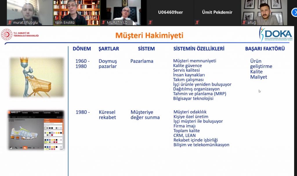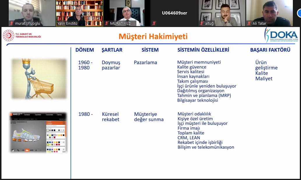 Doğu Karadeniz Kalkınma Ajansı ve Yalın Enstitü işbirliğiyle 25-26-27 Kasım tarihleri arasında video konfeans yöntemiyle üretim/sanayi sektöründe faaliyet gösteren 30 firmamıza “Yalın Düşünce Yalın Üretim Eğitimi” ücretsiz olarak verildi.